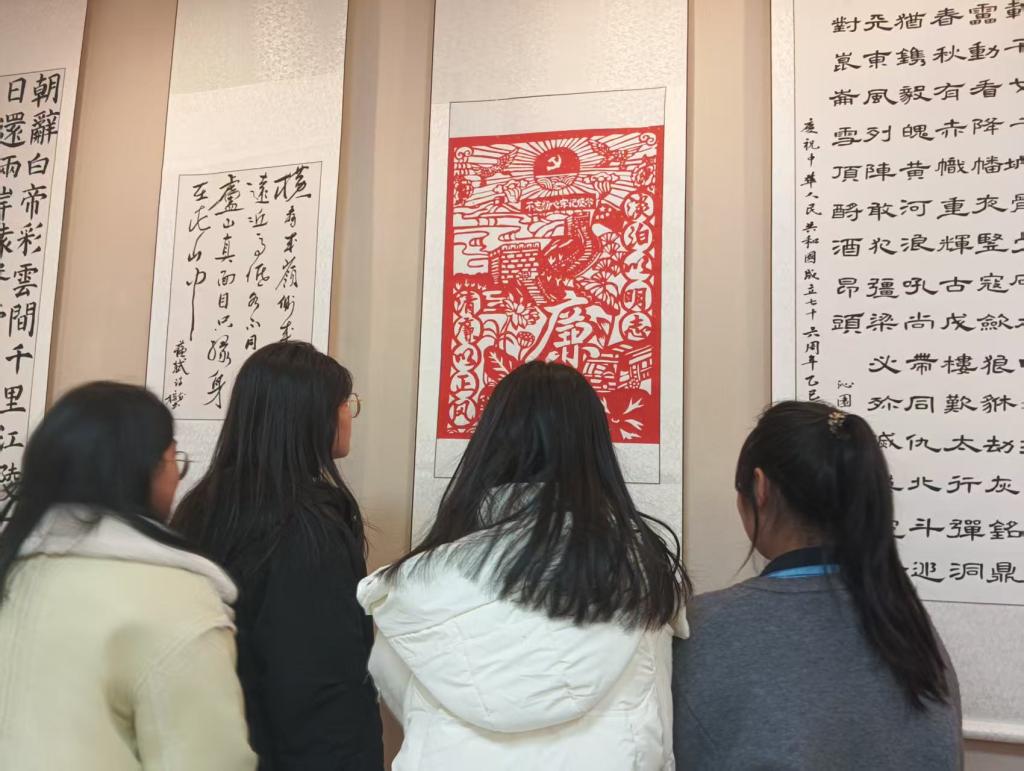 展厅内,一幅幅饱含深意的书画作品静静陈列。每一件作品都以独特的艺术语言,讲述着不忘初心、砥砺前行的时代主题。同学们缓步其间,在笔墨丹青中感受历史的温度,在行草楷隶间品味精神的传承。